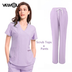 Secagem rápida tecido elástico esfrega top e calça Scrub set roupas médicas mulher cirúrgicos uniformes salão de beleza roupas de trabalho