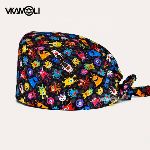 Medicina Dental e Veterinária Série Impressão Padrão Scrub Chapéu Cartoon Medical Scrubs Cap ALGODÃO Tampas De Enfermagem Chapéu Enfermeira