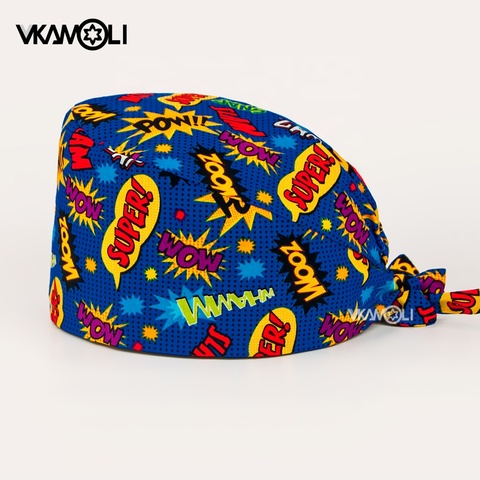 หมวกผ่าตัดพิมพ์ลายการ์ตูนการ์ตูนการ์ตูนหมวกสำหรับผู้ชายและผู้หญิงปรับได้ดูดซับเหงื่อพยาบาลสำหรับศัลยแพทย์