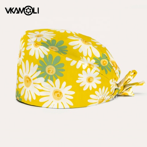 หมวกคลุมผมยาวพิมพ์ลายดอกไม้สำหรับแพทย์และพยาบาลเพื่อป้องกันผมหางม้าฝุ่น