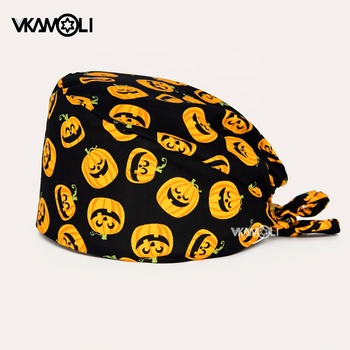 2025ใหม่ฮาโลวีนหมวกสครับพิมพ์ลายฟักทองหมวกคลินิกสำหรับสัตว์เลี้ยงในโรงพยาบาลหมวกทันตแพทย์หมวกสำหรับใส่ทำงานพยาบาลหมวกขัดแล็บ